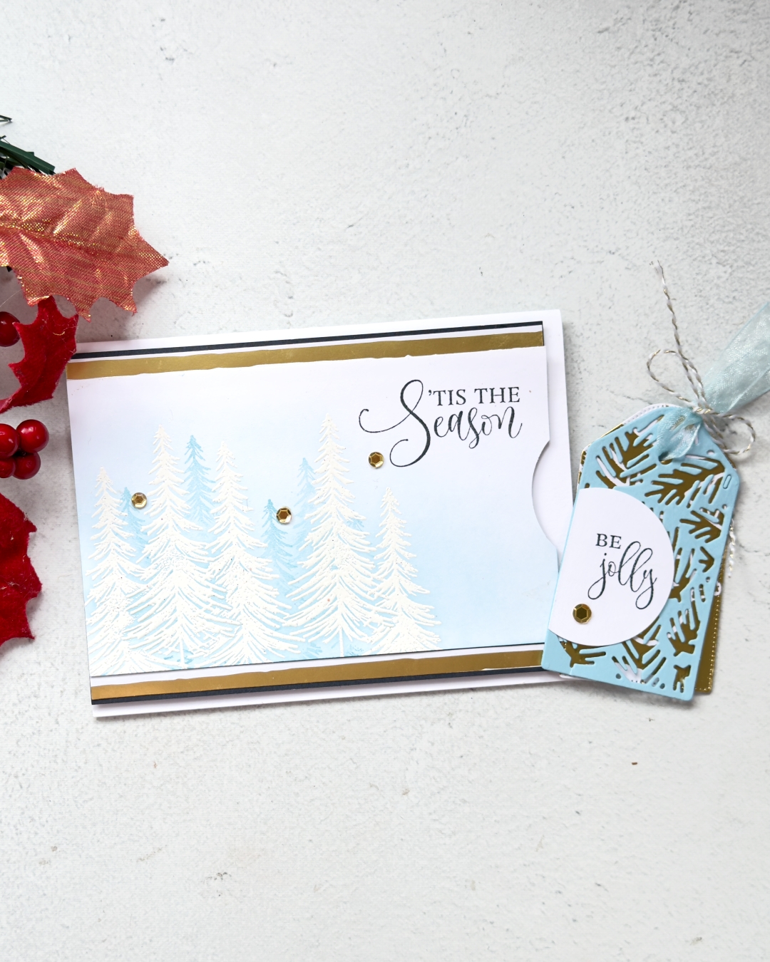 Card/Paper: Basic White, Balmy Blue, Modern Christmas DSP